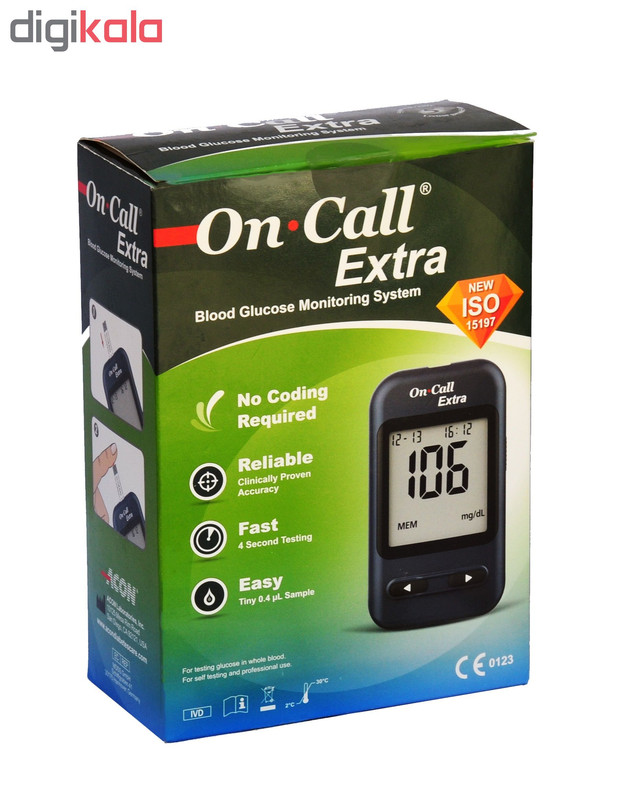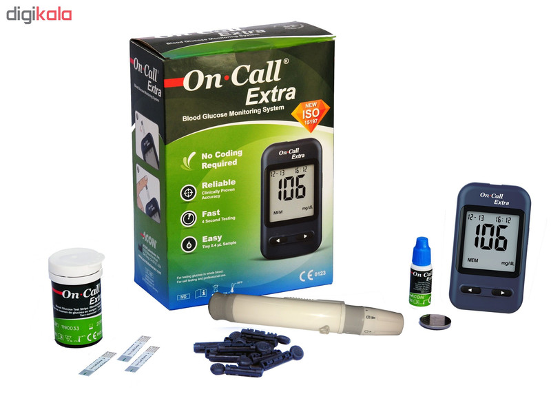دستگاه تست قند خون «On.Call Extra» ساخت کمپانی «ایکان» (Acon) دارای 300 حافظه و قابلیت میانگین‌گیری از نتایج است. انرژی دستگاه از یک عدد باتری سکه‌ای CR2023 تأمین می‌شود که تا 12 ماه یا حدود 1000 تست عمر کارکرد دارد. برای خون‌گیری از نوک انگشت باید از قلم لنست که همراه دستگاه ارائه شده استفاده کرد، این دستگاه برای اندازه‌گیری دقیق قند خون فقط به 0.4...