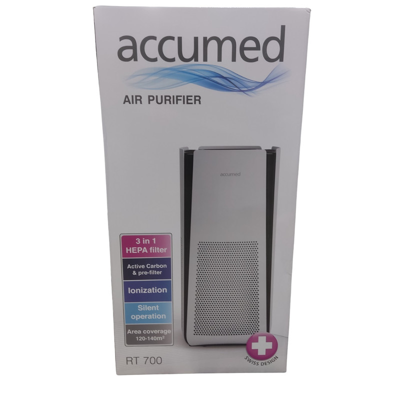 دستگاه تصفیه هوای اکیومد RT700 با استفاده از سه فیلتر توانایی تصفیه هوا و رفع بوی نامطبوع محیط را دارد. این دستگاه قابل تنظیم با 4 سرعت متفاوت بوده و با استفاده از لامپ فرابنفش می تواند ویروس ها و باکتری های موجود در هوا را از بین ببرد. این دستگاه دارای حالت خواب، زمان سنج و نشانگر تعویض فیلتر بوده و می تواند وجود ذرات با اندازه 2.5 میکرون را در محیط شناسایی کرده و به صورت اتوماتیک عملکرد خود را تنظیم کند.
