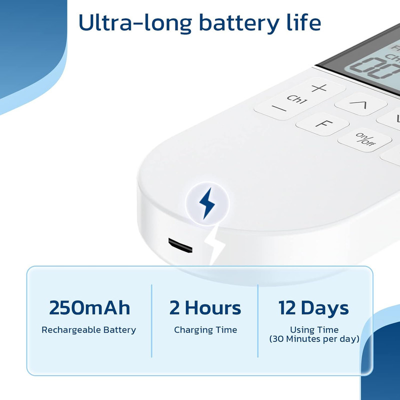 سایر توضیحاتدستگاه (Electro therapy) الکترو تراپی تنس فیزیوتراپی شارژی مدل KTR-2610 از برند TENS دستگاهی همه کاره در حیطه ی دستگاه های ماساژور برقی به حساب می آید و کاربردهای مختلفی از جمله در مصارف خانگی، حرفه ای (مناسب ورزشکاران) و مدیکال دارد. تکنولوژی TENS در تسکین درد کاربرد گسترده ای دارد، تکنولوژی EMS جهت تحریک و بازسازی عضلات به کار برده می شود و عملکرد سوم این دستگاه یعنی ماساژ جهت ریلکس و آرام کردن عضلات می باشد.تحریک الکتریکی عصب از طریق پوست،روش درمانی است که برای تسکین درد به کار می‌ رود. این دستگاه‌ ها با ارسال پالس‌ های الکتریکی از طریق الکترودهایی که روی پوست قرار می‌ گیرند، عمل می‌ کنند.