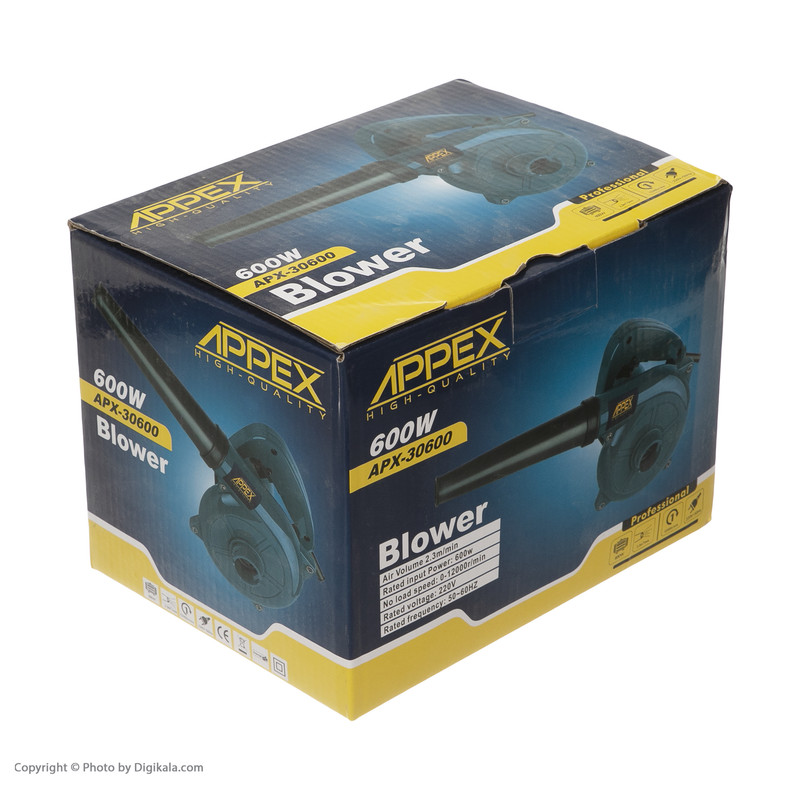 بلوور باد اپکس مدل APX-30600 دارای دماغه بلند جداشونده می باشد . وجود کیسه جمع کننده گرد و خاک در بلوور باد اپکس یکی از مزیت های این ابزار می باشد . سرعت پرتاپ باد بلوور APX-30600 اپکس 2.3 متر مکعب بر دقیقه بیان شده است . این دستگاه توانایی مکش و دمش قوی هوا را دارا می باشد .