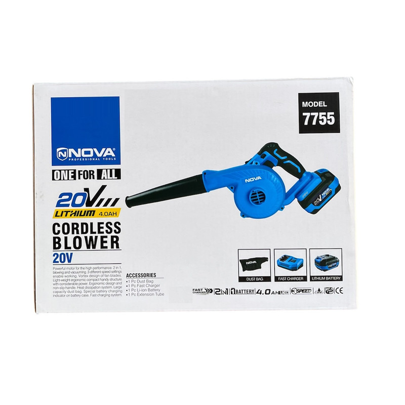 بلوور شارژی 20 ولت مدل 7755 نووا ، یک ابزار قدرتمند و کارآمد برای تمیز کردن سریع و آسان فضاهای کاری است که با موتور قدرتمند و همچنین طراحی ارگونومیک، نیازهای کاربران حرفهای و خانگی را برطرف میکند. این دستگاه با بهرهگیری از تکنولوژی روز، عملکرد بالا و قابلیت حمل آسان، یکی از بهترین انتخابها برای تمیز کردن گرد و غبار، برگها و مواد سبک در محیطهای داخلی و خارجی به شمار میآید و با قابلیت استفاده در دو حالت دمنده و مکنده، امکان پاکسازی و جمعآوری گرد و غبار و مواد سبک را به بهترین شکل فراهم میکند.