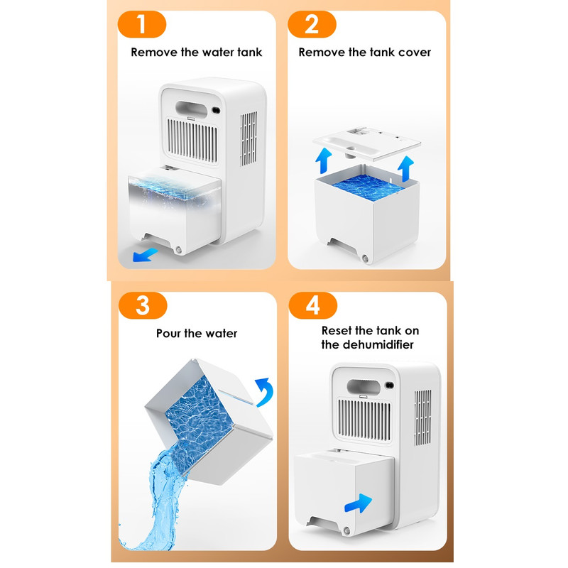 دو حالت رطوبت زدایی: حالت با راندمان بالا. رطوبت گیر بی صدا می تواند به سرعت رطوبت اضافی موجود در هوا را از بین ببرد. حالت خواب صدای بسیار کمی تولید می کند