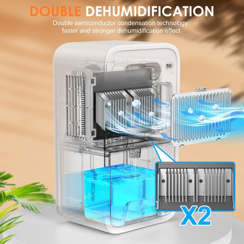 رطوبت زدایی موثر: برای بهبود کارایی، رطوبت گیرها به خنک کننده های دوتایی مجهز شده اند که تقریباً اثر رطوبت گیرهای دیگر را دو برابر می کند. روزانه تا 1000 میلی لیتر رطوبت اضافی را جذب می کند و به سرعت رطوبت اتاق را کاهش می دهد. ایده آل برای استفاده در اتاق های لباسشویی، آپارتمان ها، اتاق خواب ها، آشپزخانه ها، حمام ها، کمدها، کاروان ها و موارد دیگر.