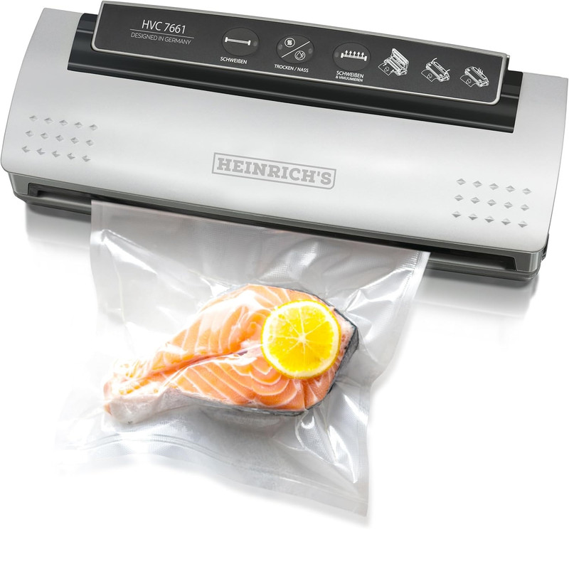 سایر ویژگی‌هادستگاه وکیوم هنریچ مدل HVC7661 : این دستگاه وکیوم فوق عریض با قابلیت تنظیم خلاء الکترونیکی، صرفه جویی در فضا با 10 کیسه درزگیر وکیوم حرفه ای، موتور 120 وات،همه کاره - دستگاه سیل وکیوم کاملاً اتوماتیک جمع و جور است و بنابراین برای هر مکانی ایده‌آل است و با تنظیم الکترونیکی ۴ سطحی خلاء، مواد غذایی شما را تا ۸ برابر بیشتر تازه نگه می‌دارد. آسان : دستگاه درزگیر وکیوم به لطف عملکرد ساده و شهودی و درز جوش بسیار پهن و بادوام، مزیت بزرگی را ارائه می‌دهد. قدرتمند : پمپ خلاء قوی ۱۲۰ واتی، قدرت مکش ۱۲ لیتر در دقیقه را تضمین می‌کند و غذای شما را در کمترین زمان ممکن آماده می‌کند. امکانات جانبی فراوان : علاوه بر امکانات جانبی متعدد مانند سیم جمع‌کن یکپارچه، 10 عدد کیسه جاروبرقی حرفه‌ای نیز ارائه می‌شود که برای پخت در خلاء (sous vide) مناسب هستند - یک دستگاه همه‌کاره مطلق. قدرت مکش قوی:پمپ خلاء قوی ۱۲۰ واتی، غذای شما را با قدرت مکش ۱۲ لیتر در دقیقه، مخلوط می‌کند.عملکرد ساده و شهودی و عملکردهای مختلف، حداکثر راحتی را در زندگی روزمره تضمین می‌کند.