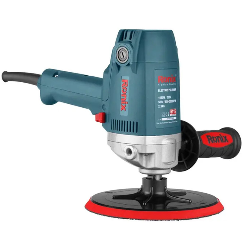 پولیش دیمر دار رونیکس مدل 6115 توسط برق کار می کند و دارای توان 1050 واتی است. این دستگاه دارای قابلیت تنظیم سرعت در 6 حالت می باشد. اندازه قطر صفحه این مدل پولیش، 180 میلی متر است. دستگاه معرفی شده دارای گیربکس صنعتی و بلبرینگ های ضد غبار می باشد. داشتن این ویژگی ها باعث افزایش عمر دستگاه و افزایش عملکرد آن می شود. پولیش دیمر دار تفنگی رونیکس دارای دسته کمکی بوده که این ویژگی باعث تسلط کاربر و کاهش خستگی او می شود. به وسیله دستگاه پولیش می توان انواع سطوح را با سرعت و قدرت زیاد پولیش کاری کرد.