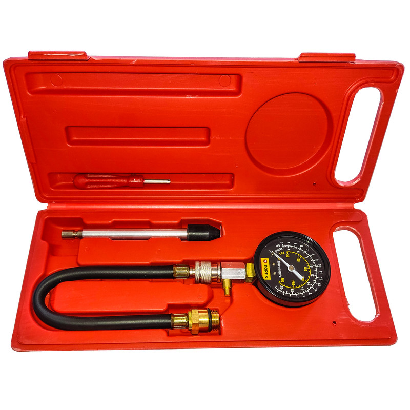 جهت سنجش عملکرد بخشی از موتور خودرو از دستگاهی به نام کمپرس سنج موتور استفاده می شود که از جمله تجهیزات گاراژی به شمار می رود. با این وسیله کاربردی می توانید به بررسی وضعیت آب بندی سیلندرها و رینگ ها و همچنین حرکت پیستون ها، داخل و خارج شدن دود از مسیر سوپاپ ها و نیز وضعیت نصب واشر سرسیلندر و تمام مواردی که در نهایت منجر به احتراق صحیح گردد، بپردازید. در واقع هر گونه ایرادی در این قسمت ها را به راحتی می توانید تشخیص دهید و به رفع مشکل به وجود آمده اقدام نمایید. هدف از خرید و استفاده از این وسیله، کاهش هزینه های تعمیرات جدی در قسمت موتور می باشد.