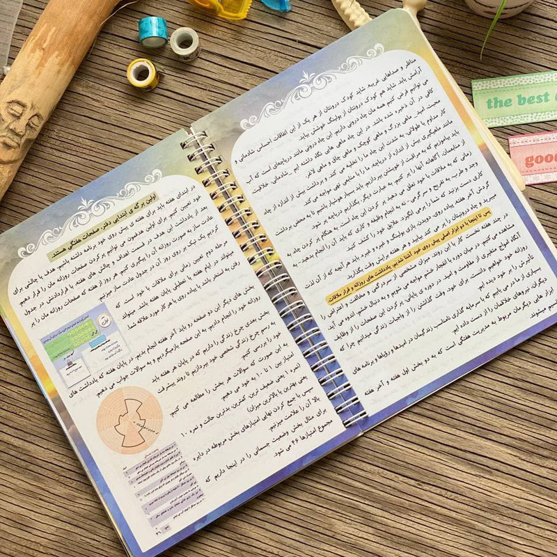 در ابتدای دفتر راهنمای کاملی برای چگونگی استفاده دفتر داریم که داخل راهنما شرح کامل بخش های مختلف دفتر و وظایف روزانه و هفتگی شما کامل ذکر شده است.