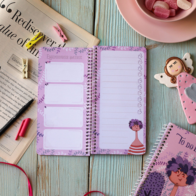 دفتر لیست انجام کارها یا همان تودولیست داری 90 برگ(180 صفحه) می باشد. صفحه سمت راست محل نوشتن کارهای روزانه تان است و صفحه سمت چپ محل تقسیم بندی کارهاتون بر اساس ماتریس آیزنهاور است. این دفتر مناسب 90 روز می باشد.