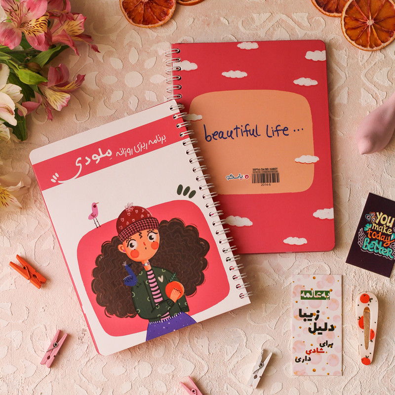 پلنر روزانه "ملودی" با طراحی اصیل ایرانی و کیفیت برتر، همراه همیشگی شما برای مدیریت زمان و برنامهریزی دقیق است. این پلنر 80 برگ دارد که به صورت تخصصی برای 80 روز طراحی شده؛ به طوری که هر دو صفحه به یک روز اختصاص دارد و امکان برنامهریزی منظم را برای شما فراهم میکند.