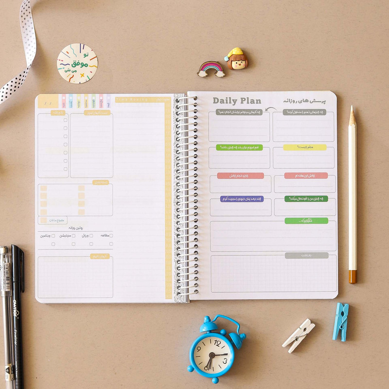 پلنر استیکری A5 با طراحی کاربردی و زیبا، همراهی ایدهآل برای برنامهریزی سهماهه شماست. این پلنر با ۹۰ برگ باکیفیت، فضای کافی برای سازماندهی کارها، اهداف و برنامههای روزانه، هفتگی و ماهانه را فراهم میکند. سایز A5 آن باعث میشود به راحتی در کیف یا کولهپشتی جا شود و همیشه همراهتان باشد. یکی از جذابترین ویژگیهای این پلنر، برچسبهای ۳۸ تکه آن است که به شما امکان میدهد جلد پلنر را به سلیقه خودتان طراحی کنید و آن را کاملاً شخصیسازی نمایید. چه برای کار، درس یا زندگی شخصی، پلنر استیکری A5 به شما کمک میکند تا زمان خود را بهتر مدیریت کرده و به اهدافتان برسید. همین حالا این پلنر را تهیه کنید و سبک برنامهریزی خود را متحول نمایید!