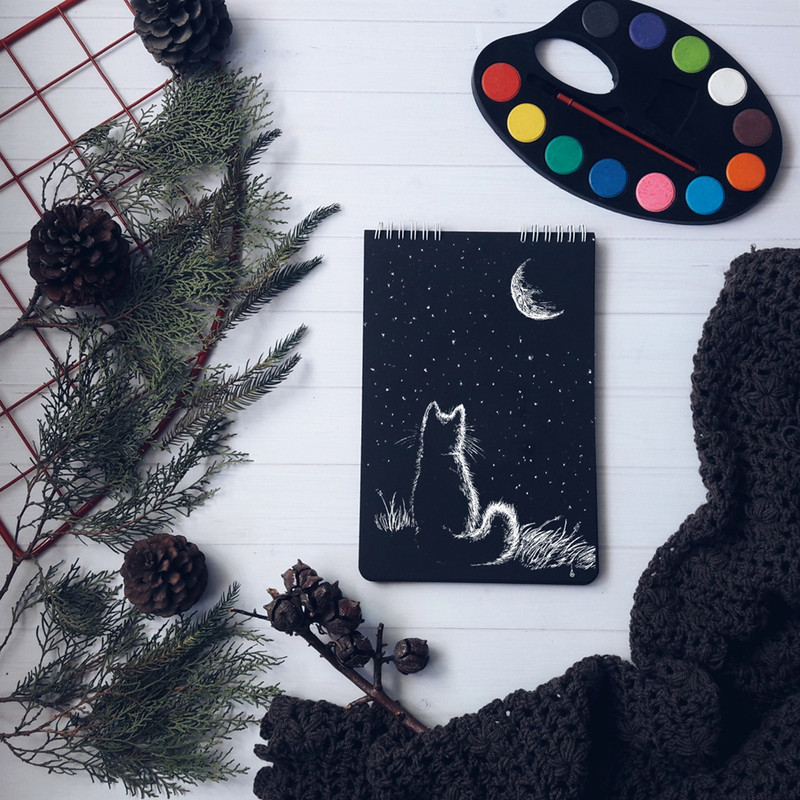 دفتر طراحی 25 برگ یاسکو مدل سیاه برگ طرح گربه