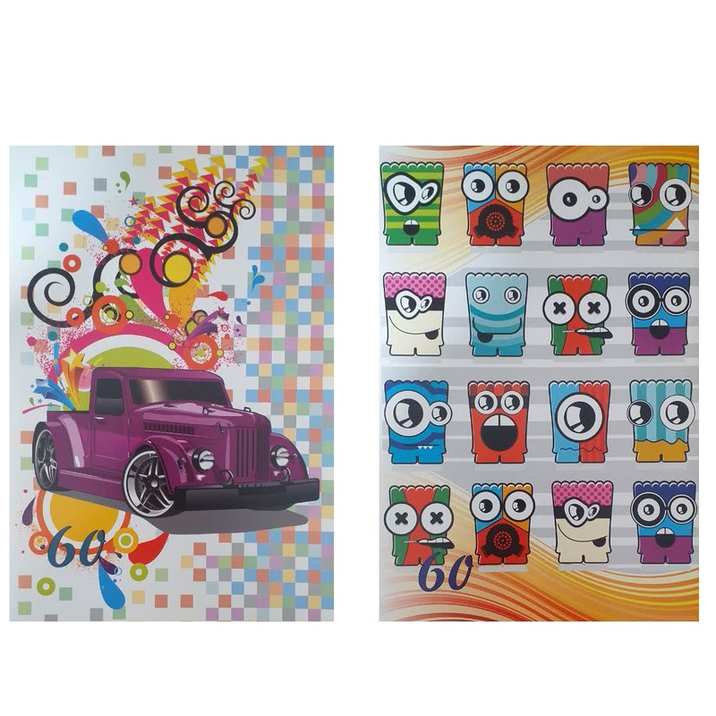 دفتر مشق 60 برگ مدل ماشین و ایموجی بسته 2 عددی