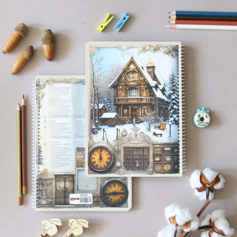 دفتر مشق 80 برگ یاسکو مدل B5 طرح کلبه برفی