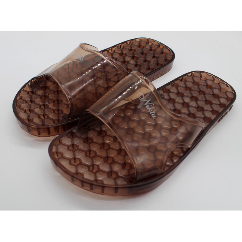 دمپایی حمام نیکتا مدل K1-109-BN توسط برند خوشنام نیکتا طراحی و تولید شده است. جنس این دمپایی PVC است. این دمپایی برای استفاده در حمام و محیط های ویلایی و ساحلی و استخری طراحی شده است. جنس متریال به گونه ای است که شفاف بوده و اصطلاحا شیشه ای است.