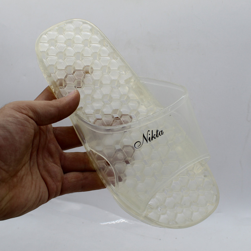 دمپایی حمام نیکتا مدل K1-109-CR توسط برند خوشنام نیکتا طراحی و تولید شده است. جنس این دمپایی PVC است. این دمپایی برای استفاده در حمام و محیط های ویلایی و ساحلی و استخری طراحی شده است. جنس متریال به گونه ای است که شفاف بوده و اصطلاحا شیشه ای است.
