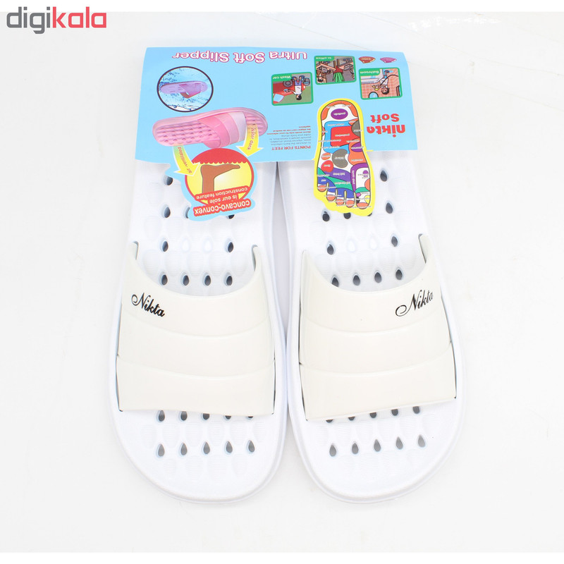 دمپایی مردانه نیکتا مدل K1 m 146 رنگ سفید از تولیدات نسل جدید شرکت نیکتا است که به سافت معروف هستند. دمپایی های سافت نیکتا بسیار سبک و بسیار نرم هستند و دارای خاصیت آنتی باکتریال میباشند. کف این دمپایی ها به گونه ای طراحی و ساخته شده است که لیز نمیخورد. دمپایی مردانه نیکتا مدل K1 m 146 رنگ سفید برای استفاده در حمام و استخر و محیط های ساحلی بسیار مناسب است.
