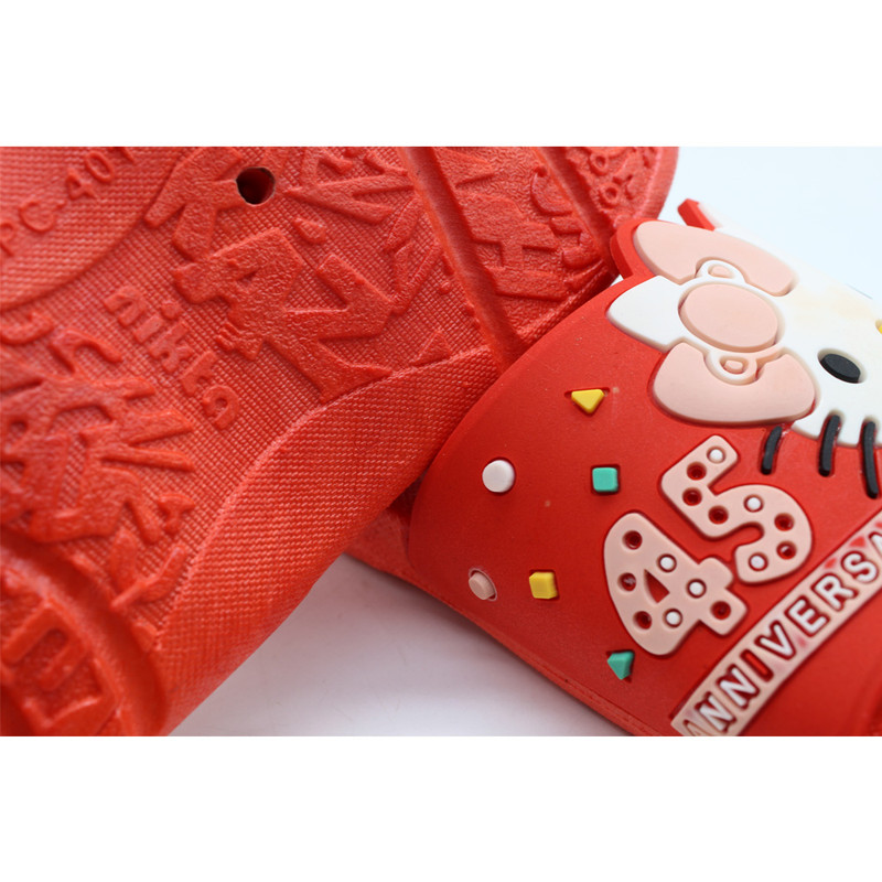 دمپایی دخترانه نیکتا طرح کیتی مدل K1-RD توسط برند خوشنام و ایرانی نیکتا طراحی و تولید شده است. این دمپایی عروسکی از جنس PVC بوده و به روش ایربولینگ تولید شده است لذا علاوه بر عمر طولانی، بسیار نرم و راحت است. در این دمپایی دخترانه از طرح پر طرفدار کیتی استفاده شده است به همین جهت بدون شک داشتن آن هر دختر بچه ای را خوشحال خواهد کرد. در ساخت رویه این دمپایی فانتزی از مواد سیلیکونی استفاده شده است.