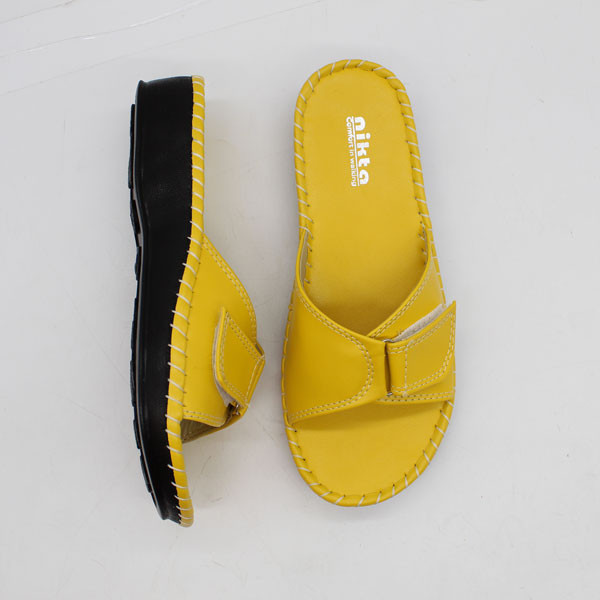 این صندل شیک و زیبا که بسیار نرم و راحت نیز میباشد توسط برند خوشنام ایرانی نیکتا طراحی و تولید شده است. زیره این صندل زنانه از جنس PU طبی ژله ای است لذا داری کفی بسیار نرم و راحت مبیاشد و پیشنهاد میشود اگر میخواهید راحتی بی نظیری را تجریه نمایید سراغ مدل دیگری نروید. رویه این صندل روفرشی زنانه از جنس چرم مصنوعی درجه یک است که برای راحتی و محافظت پوست پا و جلوگیری از تعرق دارای آستر داخلی بسیار لطیف میباشد. ضخامت زیره در قسمت پاشنه در حدود 3.5 سانتیمتر است.