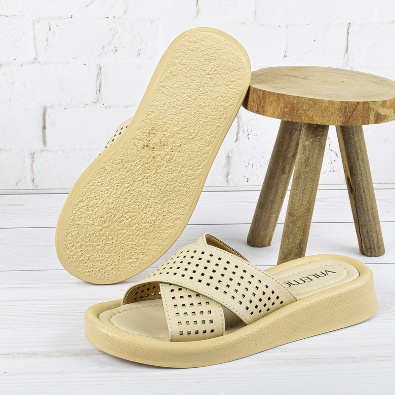 این صندل زنانه یکی از جدیدترین محصولات برند والمو میباشد که طراحی جدید و به روز آن همراه با راحتی بالا ، این کالا را به انتخابی مناسب در میان صندل های زنانه تبدیل کرده است. زیره این محصول از مواد مقاوم پلی اورتان ساخته شده که در عین سبکی از استحکام فوق العاده ای برخوردار است. کفی این محصول نیز از طراحی کاملا طبی مطابق با ارگونومی پا ساخته شده که همین امر موجب شده تا این محصول در استفاده های طولانی مدت هیچگونه آسیبی به پا و کمر شما وارد ننماید. رویه این کالا نیز از بهترین نوع مواد چرم صنعتی تهیه شده است که باعث شده تا علاوه بر زیبایی از مقاومت بالایی برخوردار باشد. دوخت تمیز باعث شده تا زیبایی این محصول دو چندان بشود.
