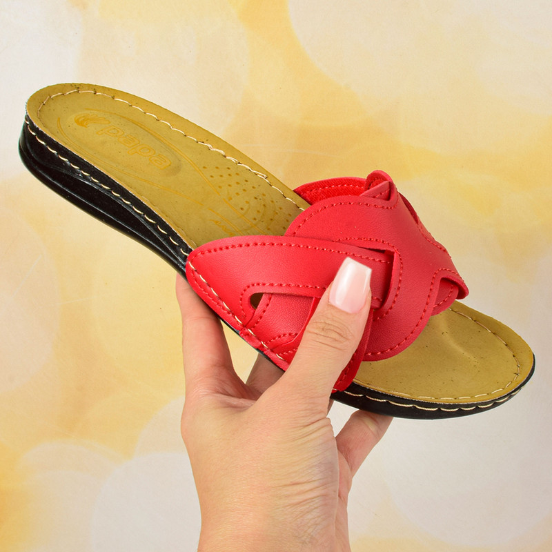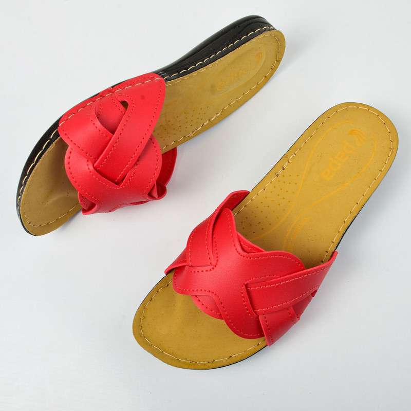 این دمپایی زنانهی پاپا با طراحی مینیمال و وزن سبک، گزینهای عالی برای استفادهی روزمره و استراحت در خانه یا فضای بیرون است. رویهی آن از چرم مصنوعی باکیفیت و به رنگ قرمز درخشان ساخته شده و با طرح بافتی و بندهای درهم، جلوهای خاص و شیک به پاها میبخشد. کفی نرم و خوشساخت این دمپایی بهخوبی از قوس کف پا پشتیبانی میکند و راحتی طولانیمدت را تضمین مینماید. زیرهی مقاوم و سبک پلیاورتان، علاوه بر دوام بالا، مانع از لغزش روی سطوح مختلف میشود و تجربهای دلپذیر از راهرفتن را فراهم میآورد. قالب استاندارد و ارگونومیک این مدل باعث میشود پا بهراحتی در آن جای گیرد و بدون ایجاد فشار اضافی، استایلی ساده و جذاب را به استایل تابستانی شما اضافه کند.
