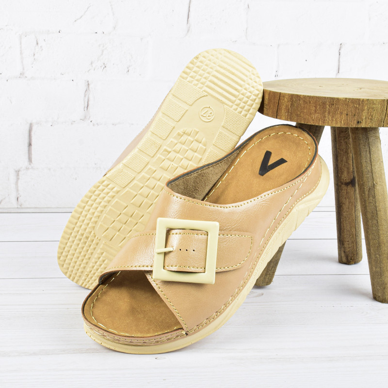 این دمپایی زنانه یکی از جدیدترین محصولات برند والمو میباشد که طراحی جدید و به روز آن همراه با راحتی بالا ، این کالا را به انتخابی مناسب در میان دمپایی های زنانه تبدیل کرده است. زیره این محصول از مواد مقاوم پلی اورتان ساخته شده که در عین سبکی از استحکام فوق العاده ای برخوردار است. کفی این محصول نیز از طراحی کاملا طبی مطابق با ارگونومی پا ساخته شده که همین امر موجب شده تا این محصول در استفاده های طولانی مدت هیچگونه آسیبی به پا و کمر شما وارد ننماید. رویه این کالا نیز از بهترین نوع مواد چرم صنعتی تهیه شده است که باعث شده تا علاوه بر زیبایی از مقاومت بالایی برخوردار باشد. دوخت تمیز باعث شده تا زیبایی این محصول دو چندان بشود.