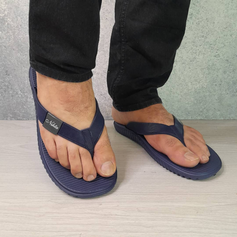 دمپایی لاانگشتی مردانه نیکتا مدل 149 کد 1166-DBE-GY دارای زیره ای جنس EVA و رویه ای از جنس PVC نرم و منعطف است.