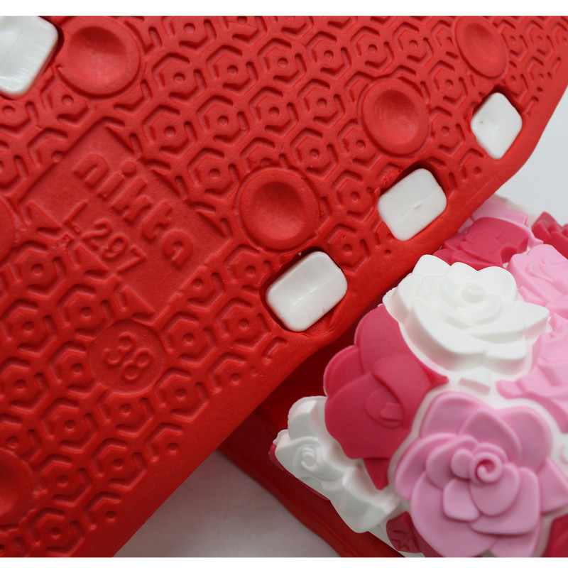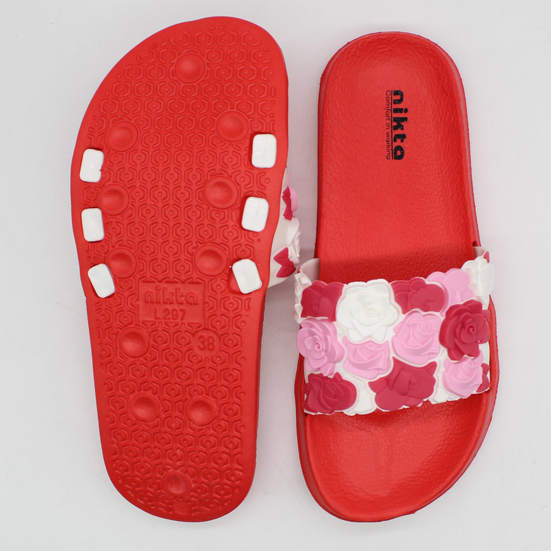 این دمپایی روفرشی شیک و زیبا توسط برند ایرانی نیکتا طراحی و تولید شده است. زیره این دمپایی از جنس EVA و رویه آن از جنس PVC با طرح گل های برجسته است. زیره EVA یک زیره نرم و سبک محسوب میشود لذا بسیار نرم و راحت است و گزینه مناسبی برای استفاده در محیط های داخلی به عنوان دمپایی روفرشی، دمپایی حمام، دمپایی سرویس بهداشتی میباشد. همچنین از این دمپایی میتوان در محیط های بیرونی و محیط های ساحلی و استخری استفاده نمود.