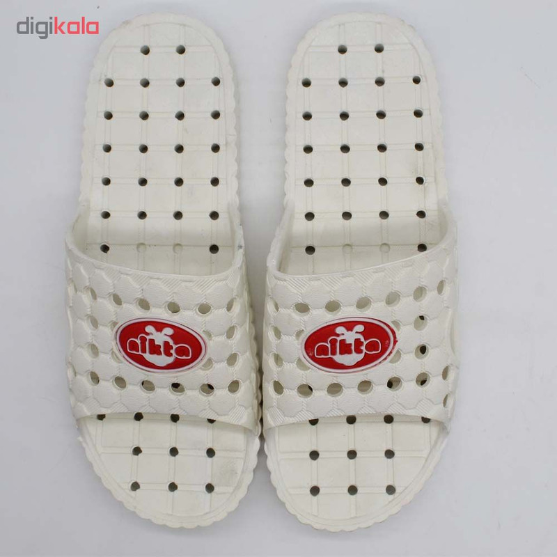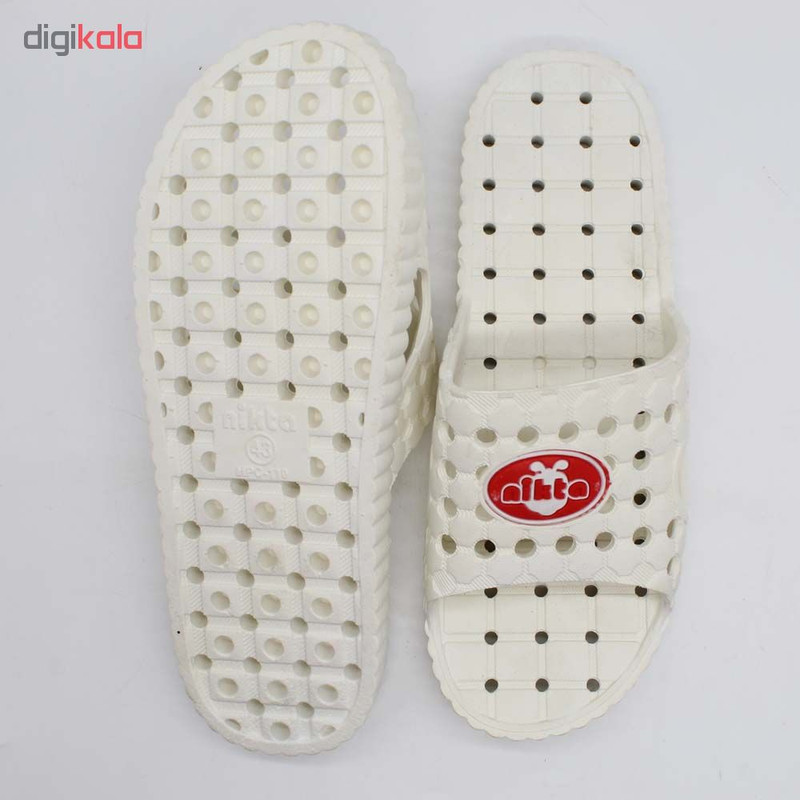 دمپایی نیکتا مدل K1-110-WH توسط برند خوشنام ایرانی نیکتا طراحی و تولید شده است.جنس این دمپایی از PVC است و شکل ظاهری دمپایی برای استفاده به عنوان دمپایی استخری یا دمپایی حمامی و دمپایی ساحلی طراحی شده است.