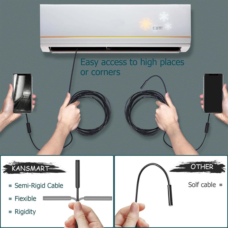 دوربین آندوسکوپی مدل ضدآب10Meters New با کابل 10 متر سخت انعطاف پذیر فنری با کانکتور میکرو USB و Type-C و USB کامپیوتر شما با این نمونه می توانید به تلفن های همراه و یا تبلت ها متصل شده و از آن در موارد متعددی استفاده نمایید. با نصب نرم افزار در دستگاه تلفن همراه و یا تبلت اندروییدی خود و یا نصب نرم افزار ویژه بر روی کامپیوتر خود و اتصال دوربین شلنگی می توانید با وضوح بالا تصاویر را دریافت کنید. این وسیله کاربردهای بسیاری دارد ازجمله کاربردهای آن جستجو و نجات،مشاهده داخل خط لوله، بازرسی موتور، نظارت تصویری، بازرسی لوله فاضلاب ،بازرسی دیوار، و غیره