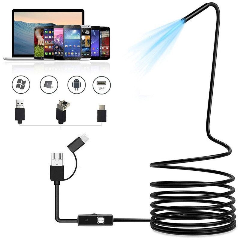 دوربین آندوسکوپی مدل ضدآب10Meters New با کابل 10 متر سخت انعطاف پذیر فنری با کانکتور میکرو USB و Type-C و USB کامپیوتر شما با این نمونه می توانید به تلفن های همراه و یا تبلت ها متصل شده و از آن در موارد متعددی استفاده نمایید. با نصب نرم افزار در دستگاه تلفن همراه و یا تبلت اندروییدی خود و یا نصب نرم افزار ویژه بر روی کامپیوتر خود و اتصال دوربین شلنگی می توانید با وضوح بالا تصاویر را دریافت کنید. این وسیله کاربردهای بسیاری دارد ازجمله کاربردهای آن جستجو و نجات،مشاهده داخل خط لوله، بازرسی موتور، نظارت تصویری، بازرسی لوله فاضلاب ،بازرسی دیوار، و غیره