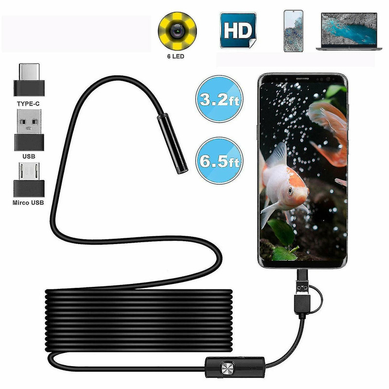 دوربین شلنگی لوله ای به طول حدود 10 متر- فقط سازگار با کامپیوتر یا لپ تاپ ویندوزی و تبلت یا گوشی موبایلهای آندرویدی با قابلیت پشتیبانی از لوازم جانبی OTG- قطر بخش دوربین: 5.5 میلیمتر