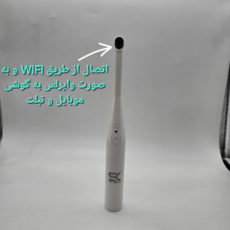 دوربین دهانی دندانپزشکی اسکای ویژن دارای کیفیت تصویر HD با قابلیت اتصال به گوشی موبایل از طریق WIFI به صورت وایرلس. دارای فاصله فوکوس 2-4 سانتی متر و سنسور 2 میلیون پیکسلی. دارای ۶ عدد نور ال ای دی قابل تنظیم و دارای باطری داخلی شارژی.و با نصب نرم افزار آن به راحتی میتوانید تصویر آنرا روی موبایل بدون کابل مشاهده کنید بدون نیاز بدون نیاز به اینترنت است