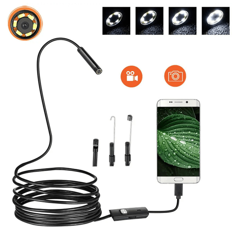 دوربین شلنگی مدل شکل پذیر فلزی 10M LED NEW با کابل 10 متر سخت انعطاف پذیر فنری با کانکتور میکرو USB و Type-C و USB کامپیوتر شما با این نمونه می توانید به تلفن های همراه و یا تبلت ها متصل شده و از آن در موارد متعددی استفاده نمایید. با نصب نرم افزار در دستگاه تلفن همراه و یا تبلت اندروییدی خود و یا نصب نرم افزار ویژه بر روی کامپیوتر خود و اتصال دوربین شلنگی می توانید با وضوح بالا تصاویر را دریافت کنید. این وسیله کاربردهای بسیاری دارد ازجمله کاربردهای آن جستجو و نجات،مشاهده داخل خط لوله، بازرسی موتور، نظارت تصویری، بازرسی لوله فاضلاب ،بازرسی دیوار، و غیره
