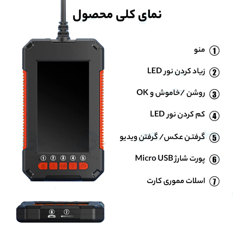 این دوربین با کارایی بالا با دقت طراحی شده است و دارای کابل انعطاف پذیر 10 متری است که سهولت ناوبری را حتی در پیچیده ترین ساختارها و فضاها تضمین می کند. ترکیبی یکپارچه از عملی بودن و کارایی را تجربه کنید، که تضمین شده است. دارای خروجی با وضوح بالای 1600×1200 و 1280×720 پیکسل است که به کاربران اطمینان می دهد که تصویری شفاف دارند.با بدنه ای مستحکم که از مواد کابلی منعطف و ارتجاعی ساخته شده است. این دوربین همچنین دارای استاندارد IP67 است که مقاومت استثنایی در برابر آب را ارائه می دهد. کاربران می توانند بدون هیچ گونه نگرانی در محیط های مرطوب یا غوطه ور حرکت کنند و از عملکرد بی خطر اطمینان حاصل کنند.مانیتور 4.3 اینچی یکپارچه دسترسی فوری به فیلمهای زنده را برای کاربران فراهم میکند و بدون هیچ زحمتی تنظیمات یا پیوستهای اضافی را از بین میبرد. اندازه صفحه نمایش برای مشاهده جزئیات پیچیده بهینه است و فرآیند را راحت تر و کارآمدتر می کند. به لطف فناوری پیشرفته دید در شب P40، حتی در تاریکی کامل، نادیده ها را روشن کنید. این ویژگی به کاربران امکان می دهد مناطقی را با شرایط کم نور کاوش یا تشخیص دهند و استفاده در محیط ها و شرایط مختلف را گسترش دهند.