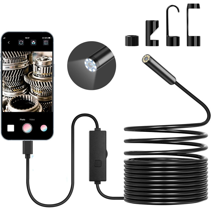 دوربین شلنگی مدل ضدآب Autofocus 10M HD 360 با کابل 10 متری 5مگاپیکسل از جدیدترین نمونه دوربین های آندوسکوپی موجود در دنیا با قدرت تصویر برداری HD و دوربین اتو فوکوس می باشد. در سال 2023 شرکت Inskam اقدام به ارائه انواع جدیدی از دوربین های شلنگی که دارای قابلیتهای ویژه ای هستند نمود. از جمله انواع دوربین های باکیفیت بالای 5 مگاپیکسل و قطرهای متفاوت دوربین با قابلیت منحصر بفرد اتوفوکوس و پروپ دوربین دارای استاندارد IP67 و کاملاً ضد آب که باعث می شود تا کاربران بتوانند در شرایط محیطی متفاوت از این دوربین های شلنگی اتوفوکوس نهایت استفاده را ببرند. این دوربین می تواند با استفاده از نرم افزار Ins kam تصویر را با کیفیت بالا در گوشی های هوشمند نمایش داده و امکاناتی همچون گردش تصویر بصورت 360 درجه ، امکان نمایش همزمان یک تصویر گرفته شده و مقایسه آن با تصویر زنده دوربین ، زوم تصویر و همچنین امکان تهیه عکس و فیلم در حین تصویربرداری از محل های دلخواه را در اختیار کاربر قرارداده و همزمان با آن در کارت حافظه ذخیره سازی نماید. یکی از موارد منحصر بفرد این دوربین قابلیت پرتاب نور تا 2 متر در شرایط کاملا تاریک و بدون نور است که با استفاده از 4 LED ویژه پرنور میسر می شود و می تواند در کاوشهای باستان شناسی و اکتشافات معدنی کاربرد موثری داشته باشد. این سری از دوربین های شلنگی اتوفوکوس 5 مگا پیکسلی در انواع مختلف در دسترس می باشند که مدل حاضر دارای یک دوربین با قطر پروب 11میلیمتر با قابلیت اتو فوکوس و رزولوشن 5 مگا پیکسلی بوده و با طول کابل 10 متری و کابل انعطاف پذیر با قابلیت اتصال به انواع موبایلهای اندروییدی عرضه می شود.
