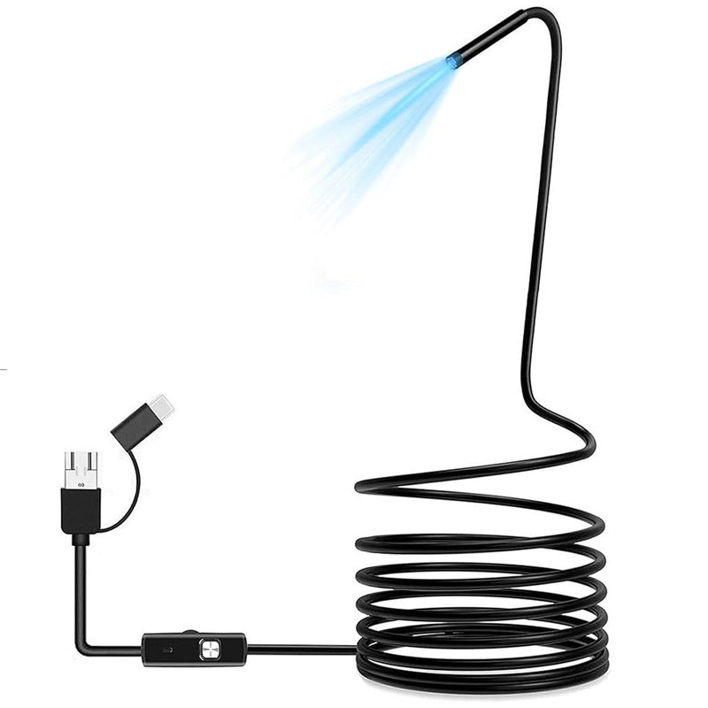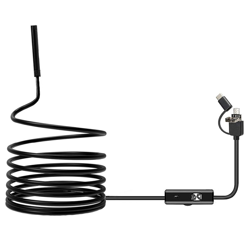 دوربین آندوسکوپی مدل ضدآب5Meters New با کابل 5 متر سخت انعطاف پذیر فنری با کانکتور میکرو USB و Type-C و USB کامپیوتر شما با این نمونه می توانید به تلفن های همراه و یا تبلت ها متصل شده و از آن در موارد متعددی استفاده نمایید. با نصب نرم افزار در دستگاه تلفن همراه و یا تبلت اندروییدی خود و یا نصب نرم افزار ویژه بر روی کامپیوتر خود و اتصال دوربین شلنگی می توانید با وضوح بالا تصاویر را دریافت کنید. این وسیله کاربردهای بسیاری دارد ازجمله کاربردهای آن جستجو و نجات،مشاهده داخل خط لوله، بازرسی موتور، نظارت تصویری، بازرسی لوله فاضلاب ،بازرسی دیوار، و غیره