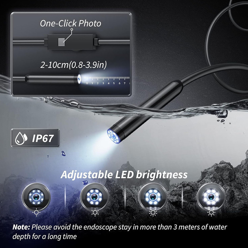 دوربین آندوسکوپی مدل ضدآب10Meters New با کابل 5 متر سخت انعطاف پذیر فنری با کانکتور میکرو USB و Type-C و USB کامپیوتر شما با این نمونه می توانید به تلفن های همراه و یا تبلت ها متصل شده و از آن در موارد متعددی استفاده نمایید. با نصب نرم افزار در دستگاه تلفن همراه و یا تبلت اندروییدی خود و یا نصب نرم افزار ویژه بر روی کامپیوتر خود و اتصال دوربین شلنگی می توانید با وضوح بالا تصاویر را دریافت کنید. این وسیله کاربردهای بسیاری دارد ازجمله کاربردهای آن جستجو و نجات،مشاهده داخل خط لوله، بازرسی موتور، نظارت تصویری، بازرسی لوله فاضلاب ،بازرسی دیوار، و غیره