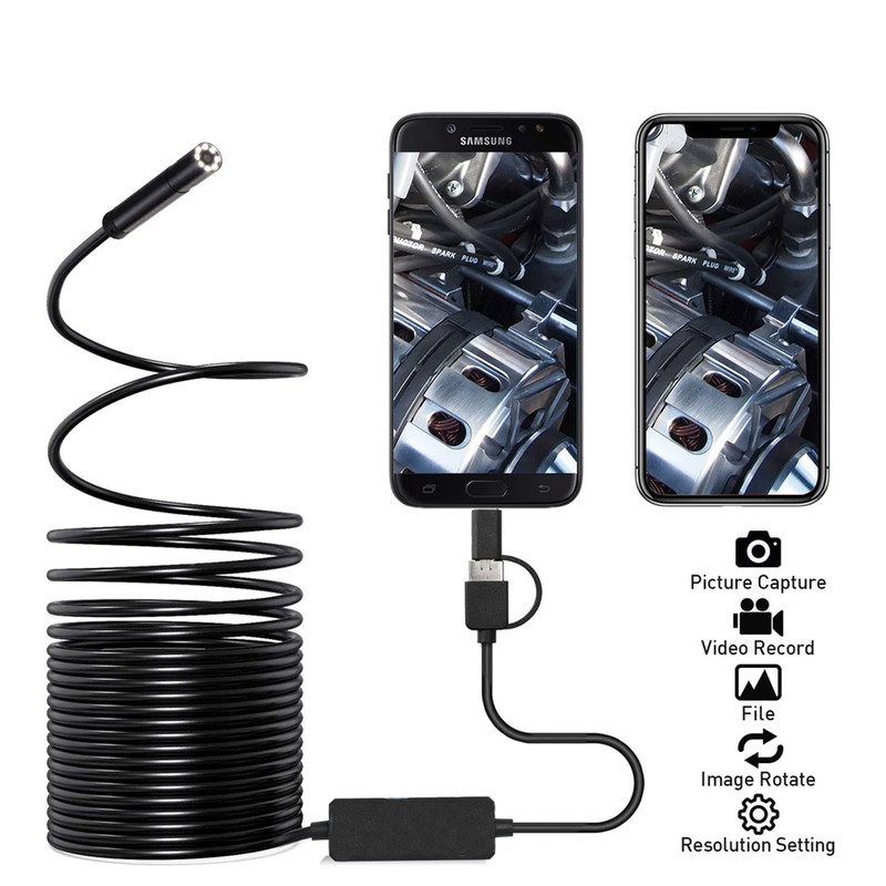 دوربین شلنگی مدل چراغدار Waterproof 20Meters که به عنوان دوربین شلنگی ، دوربین بازرسی لوله ، دوربین ماری نیز شناخته میشود، دوربینی کوچک با قابلیت انعطاف پذیری است. این مدل از دوربین شلنگی با دارا بودن 20 متر کابل نیمه سخت انتخابی مناسب برای حفره های عمیق تا عمق 20 متر میتواند مفید باشد.دوربین آندوسکوپی 20 متری قابلیت اتصال به گوشی های اندرویدی و کامپیوتر را دارد. نرم افزار این دوربین USB CAMERA ، AN CAMERA و INSKAM بوده و با توجه به مدل گوشی موبایل میتوان یکی از این این نرم افزار ها را به صورت رایگان دانلود و نصب کرد. کارکرد این دوربین بسیار آسان بوده و فقط کافیست که این دوربین را به پورت USB موبایل و یا لپ تاپ متصل کنید تا فیلمبرداری انجام شود. این وسیله کاربردهای بسیاری دارد ازجمله کاربردهای آن ،بررسی گوش، معاینه دهان و دندان، جستجو و نجات، حفاری چاه، مشاهده داخل خط لوله، بازرسی موتور، نظارت تصویری، بازرسی لوله فاضلاب، بازرسی دیوار و هر مکانی که دسترسی به آن سخت است