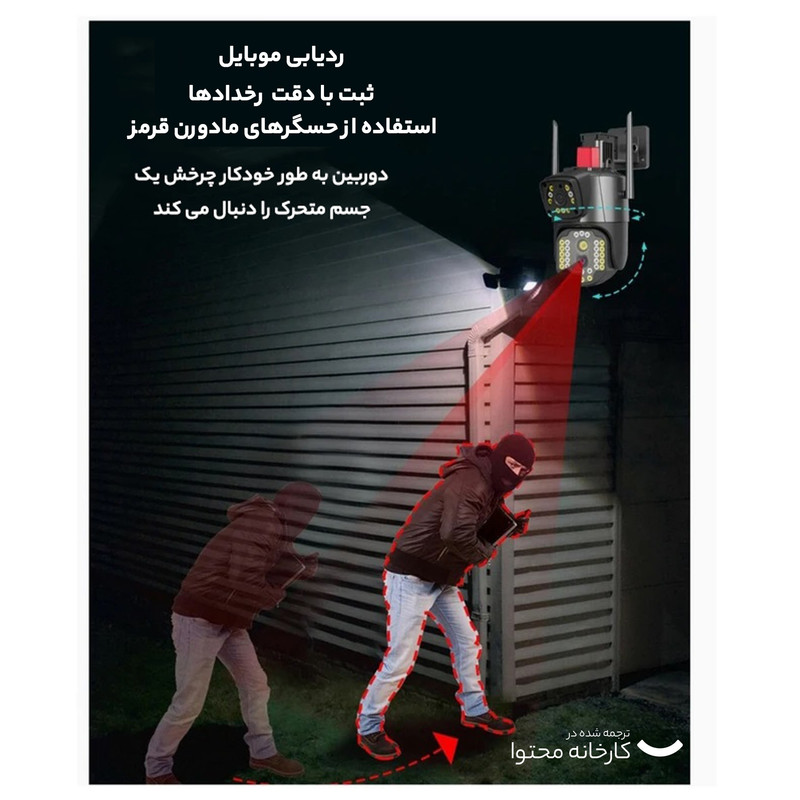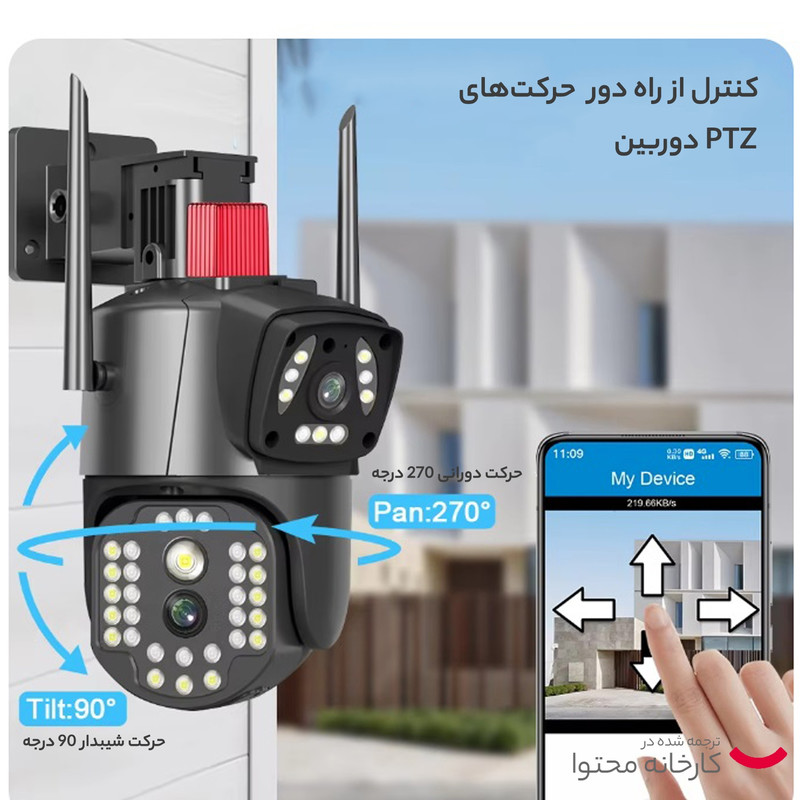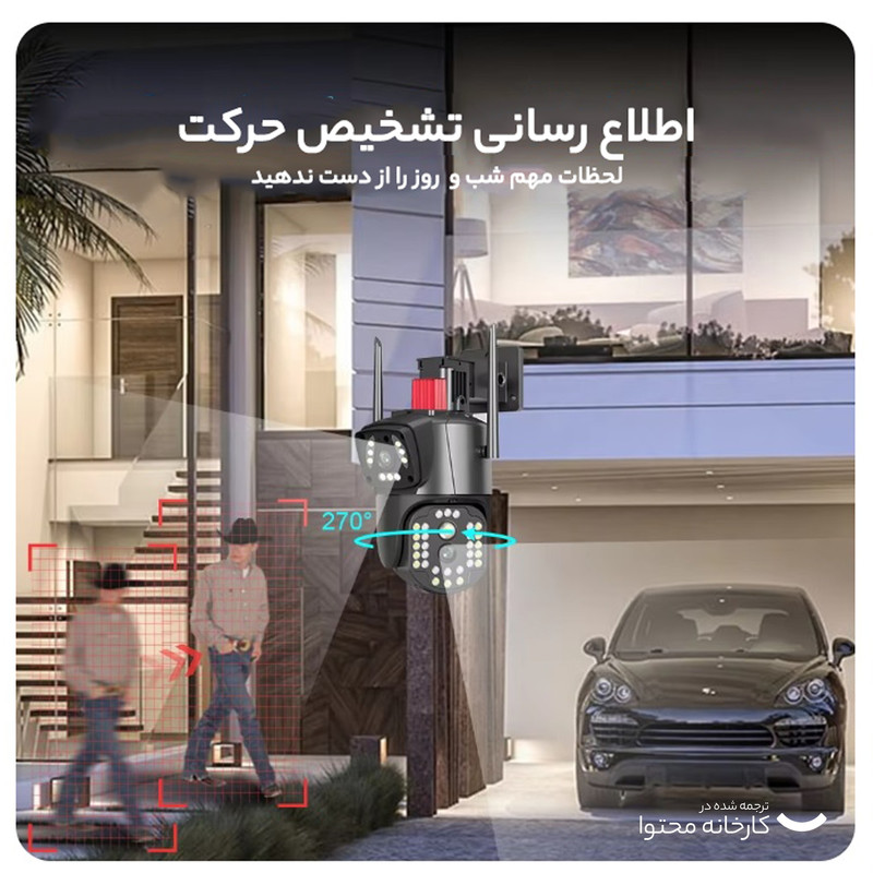 قابلیتهای دوربین امنیتی و نظارتی | قابلیت چرخش Tilt , قابلیت چرخش Pan , قابلیت بزرگنمایی دیجیتال , دید در شب , ماسک محدوده حریم شخصی , قابلیت ضبط صدا , شیار کارت حافظه , قابلیت اتصال به گوشی , قابلیت تشخیص انسان , قابلیت مکالمه دو طرفه , دارای محفظه کارت حافظه , دارای سنسورهای حرکتی , ضدآب |