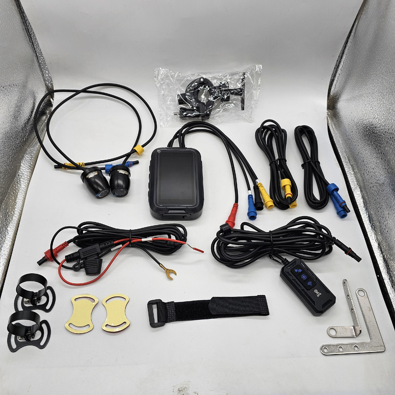دوربین موتور سیکلت شارک مدل 2lens-wifi این سیستم مناسب استفاده روی تمامی موتور سیکلت ها میباشد و دارای یک مانیتور 3 اینچ ضد آب با کیفیت تصویر FULL HD 1080P میباشد و این سیستم دارای 2 عدد دوربین شارک MS-24 میباشد که دارای کیفیت تصویر 1080P FULL HD بوده و دارای زاویه دید 150 درجه کاملا واید بوده که شما میتوانید یک عدد از این دوربین را پشت موتور و دیگری را جلوی موتور متصل نمایید و به طور همزمان تمام زوایای جلوی موتور و پشت موتور را ضبط کنید و به صورت همزمان مشاهده کنید این دوربین و مانیتور دارای استاندارد ضد آب IP67 بوده که شما میتوانید این دوربین را بدون هیچ مشکلی در زیر باران استفاده کنید دارای پایه مخصوص برای نصب دوربین ها و دارای پایه مخصوص مانیتور این دوربین دارای WIFI بوده و شما میتوانید به صورت لایو یا تصاویر ضبط شده را را روی نرم افزار موبایل مشاهده کنید (در محدوده 20 متری موتور) این دوربین دارای قابلیت لوکیشن بوده و شما روی مانیتور آن میتوانید سرعت خود و موقعیت جغرافیایی خود را به صورت X و Y مشاهده کنید (آفلاین بدون نیاز به اینترنت) این محصول علاوه بر سیستم پارکینگ مانیتورینگ که قابلیت ضبط هوشمند را دارد (ضبط خودکار تصاویر در صورت تشخیص حرکت نزدیک به موتور در زمان پارک و خاموش بودن موتور). از سیستم G-Sensor نیز پشتیبانی می نماید, تکنولوژی G-Sensor را می توان هوشمندانه ترین سیستم در طراحی این قبیل دوربین ها دانست که در صورتی که موتور خاموش و در حالت پارک باشد دوربین در صورت احساس ضربه یا تصادف و یا لرزش در بدنه موتور بصورت کاملا اتوماتیک روشن شده و شروع به ضبط تصاویر دوربینهای جلو و عقب می نماید. این امر به شما کمک می کند تا در صورتی که موتور خود را ترک کردید در صورتی که تصادفی با موتور شما رخ دهد و یا شخصی اقدام به ضربه و یا کشیدن خطوط بر روی بدنه موتور کند دستگاه با تشخیص لرزش بصورت اتوماتیک روشن می شود و از اتفاقات رخ داده تصویر برداری خواهد کرد. قابلیت ساپورت رم تا 128 گیگابایت و قابلیت کار با برق ۵ ولت الی ۱۲ ولت موتور سیکلت دارای ریموت سیمی که شما میتوانید با آن نمایشگر را قفل یا باز یا عکس بگیرید یا wifi را خاموش روشن کنید