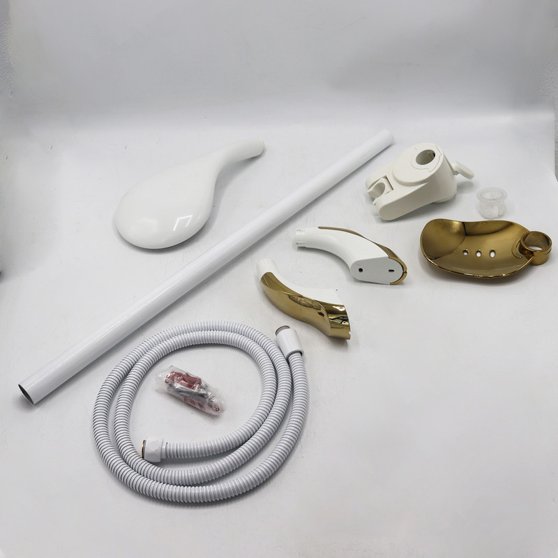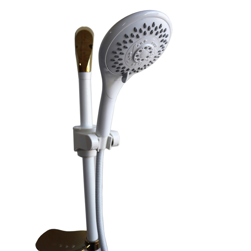 سایر توضیحات | - دوش حمام مدل کاسپین - دارای رنگ خاص طلایی و سفید براق زیبا - دارای گوشی دوش 3 حالته باکیفیت و ضد رسوب - شلنگ دوش 140 سانتیمتری از جنس استیل با رنگ استاتیک سفید - دارای تمامی لوازم مورد نیاز (پیچ رول پلاک و اتصالات) |