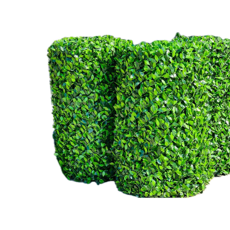 فنس برگی، تلفیقی از فنس فلزی ساخته شده از مفتول و الیاف برگ مانند و سبز رنگ است که امروزه برای جداسازی و محصور کردن فضاها بسیار مورد استفاده قرار می گیرد. فنس چمنی به دلیل زیبایی ظاهری فوق العاده و سرسبزی که به محیط می دهد برای بسیاری از افراد جذاب است و اولین گزینه آن ها برای تفکیک فضاها می باشد.فنس معمولی در اصل برای جداسازی فضاها مورد استفاده قرار می گیرد و به دلیل ماهیت فلزی، عبور کردن از آن راحت نیست. با پیشرفت تکنولوژی فنس های چمنی پدید آمدند که علاوه بر جداسازی فضاها و زیبایی ظاهری، از دیده شدن سمت دیگر فنس نیز جلوگیری می کرد. به عبارتی با بکارگیری فنس چمنی شما علاوه بر جداسازی فیزیکی و بصری دو فضای مختلف، زیبایی و سرسبزی را خواهید داشت فنس چمنی برای ویلا و باغ ویلاها: در کشورمان مناطقی وجود دارد که تراکم ویلاسازی در آنجا بالاست و بسیاری از ویلاها دیوارهای مشترکی با هم دارند و یا دیوار ویلا رو به کوچه و خیابان است که معمولا قسمت بالایی این دیوارها با نرده های فلزی ساخته شده اند. استفاده از فنس چمنی بر روی این نرده ها ایده بسیار فوق العاده ای است زیرا علاوه بر محصور کردن فضای داخل ویلا، جلوی دید بیرون را خواهد گرفت و جلوه بصری بسیار خوبی برای ویلای شما خواهد داشت.طول این فنس 1 متر و عرض آن ۱/۵ متر می باشد.رنگ این فنس دو رنک میباشد سبز تیره و روشن است