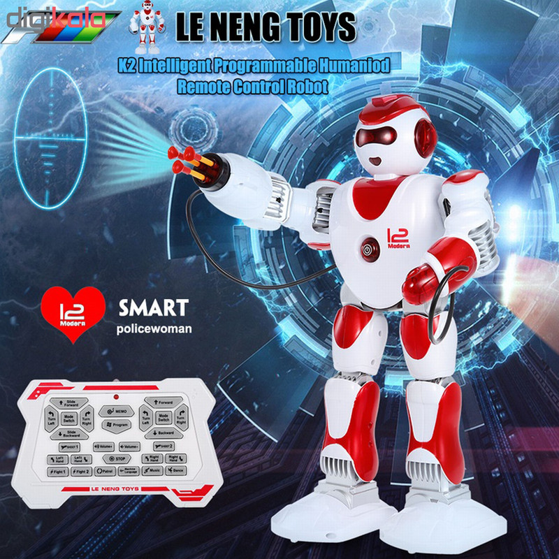 | توضیحات ریموت | ابعاد ریموت ۱۴٫۵ × ۸٫۵ × ۲ سانتیمتر– نیازمند دو عدد باتری قلمی ۱٫۵ ولتی– قابلیت هدایت ربات به تمامی جهات– دارای دکمهی دمو، تنظیم صدا، برنامه، موزیک و … |