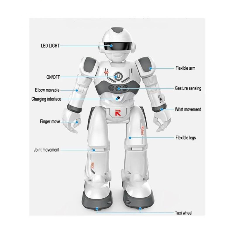 کنترل حرکت و کنترل از راه دور: برای کنترل این اسباب بازی ربات هوشمند می توانید از راه دور یا حرکات استفاده کنید. دارای سنسور اینفرارد ( مادون قرمز ) بر روی سینه خود بوده که با تکان دادن دست به صورت بسته در جلوی آن می توان راه رفتن ربات را بدون استفاده از ریموت کنترل، کنترل کرد. ربات می تواند به سادگی با حرکات شما به جلو ، عقب ، چپ و راست عمل کند. همچنین مجهز به سنسورهای تشخیص برخورد است که باعث می شود از برخورد با موانع پیش روی خود جلوگیری کند. چشم ها هنگام حرکت LED با رنگ قرمز روشن می شوند.