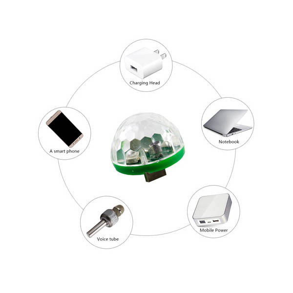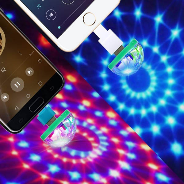اگر شما به دنبال یک رقص نور برای متفاوت شدن مهمانی ها و جشن های خانگی هستید و میخواهید میهمانی خود رابه یک میهمانی مجلل و ماندنی تبدیل کنید٬ میتوانید از لامپ LED رقص نور موبایل استفاده کنید، این دستگاه جایگزین مناسبی برای دستگاه های رقص نور لیزری گران قیمت است٬ قیمت این دستگاه بسیار مناسب است و شما با یک وسیله کوچک ارزان یک میهمانی را در یک چشم به هم زدن٬ جذاب و با نشاط می کنید و شادی افراد را دوچندان می کنید، لامپ LED رقص نور موبایل با قابلیت اتصال به تلفن همراه و یا هر وسیلهی دیگری که خروجی usb دارد٬ مناسب برای مجالس مختلف مانند: جشن تولد٬ سالگرد ازدواج و حتی مناسب برای دکوراسیون و اتاق خواب کودک است.رقص نور ریموت دار مدل Magic Ball به شکل توپ شیشه ای با طرح لانه زنبوری ساخته شده است.این محصول همراه با رقص نور در محیط های تاریک و نورافشانی های دلنشین جذابیت آنرا دوچندان خواهد کرد. توپ جادویی رقص نورکوچک usb، دارای قابلیت اتصال به دستگاههای دارای خروجی یو اس بی مانند کامپیوتر، لپ تاپ، پاور بانک، تبلت و میکروفون، و به دلیل داشتن یک سری otg همراه، قابل اتصال به انواع گوشی است که بسیار مناسب جشنها٬ مهمانی ها و مراسم های شماست که نیاز به رقص نور خانگی دارد. شکل ظاهری این دستگاه به شکل نیم کره ای از جنس پلاستیک و مانند کریستال است ٬ این نیم کره کریستالی با تغییر رنگ، همزمان با بازی رنگها بر روی دیوار و سقف، اثر قدرتمندی بر ظاهر کلی و فضای احساس میهمانی میگذارد.منبع انرژی این توپ از طریق دستگاه وصل شده تامین می گردد و توان آن فقط و فقط 4w می باشد. این توپ جادویی برای کودکان عزیز شما نیز بسیار جذاب و دوست داشتنی است.