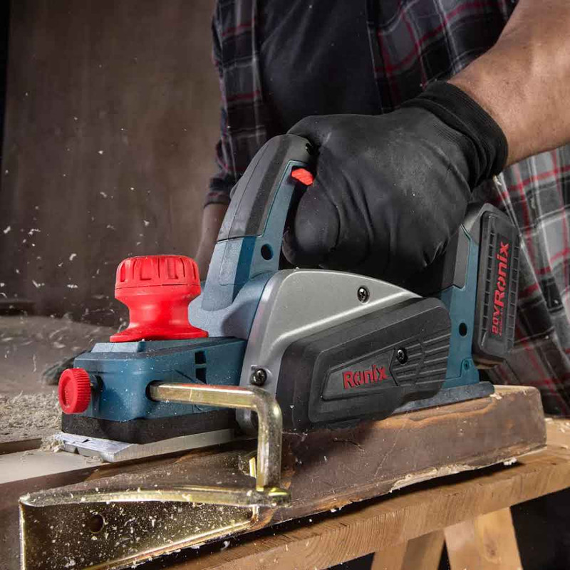 رنده نجاری شارژی 20 ولت 8603 رونیکس، برای حذف ناهمواری‌های سطح چوب پس از برش و ایجاد سطوح یک‌دست مورد استفاده قرار می‌گیرد. این ابزار در پروژه‌های نجاری، تعمیر درب، لبه‌گیری و اصلاح سطوح چوبی مختلف کاربرد دارد. رنده شارژی نجاری 8603 رونیکس، با موتور قدرتمند خود، سرعتی بالغ بر 15000 دور در دقیقه را ایجاد می‌کند.