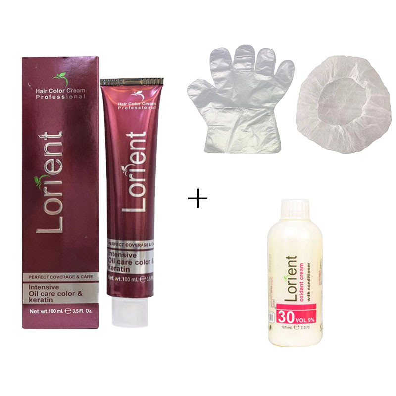 رنگ مو لورینت شماره C9 حجم 100 میلی لیتر رنگ بلوند نقره ای به همراه اکسیدان مدل 2 نه درصدی حجم 125 میلی لیتر