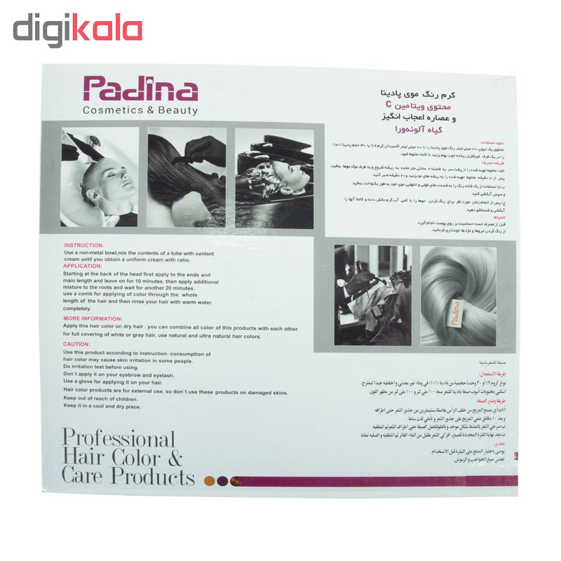 رنگ مو دائمی پادینا با توجه به ویژگی های منحصر به فرد موی ایرانی از لحاظ ضخامت و داشتن قرمزی با همکاری شرکت فرانسوی LCW فرموله و به بازار عرضه گردیده است. این رنگ مو شامل ویتامین C و آلوئه ورا می باشد که خاصیت قوی نرم کنندگی، حالت دهندگی، براقیت بالا و مرطوب کنندگی را دارا می باشد.