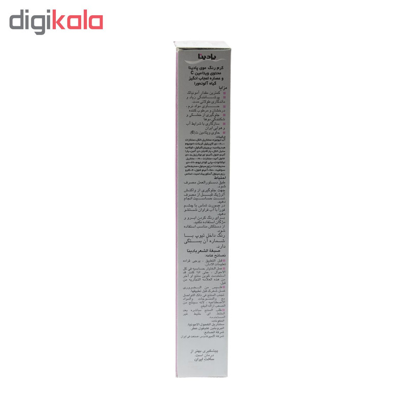 رنگ مو دائمی پادینا با توجه به ویژگی های منحصر به فرد موی ایرانی از لحاظ ضخامت و داشتن قرمزی با همکاری شرکت فرانسوی LCW فرموله و به بازار عرضه گردیده است. این رنگ مو شامل ویتامین C و آلوئه ورا می باشد که خاصیت قوی نرم کنندگی، حالت دهندگی، براقیت بالا و مرطوب کنندگی را دارا می باشد.