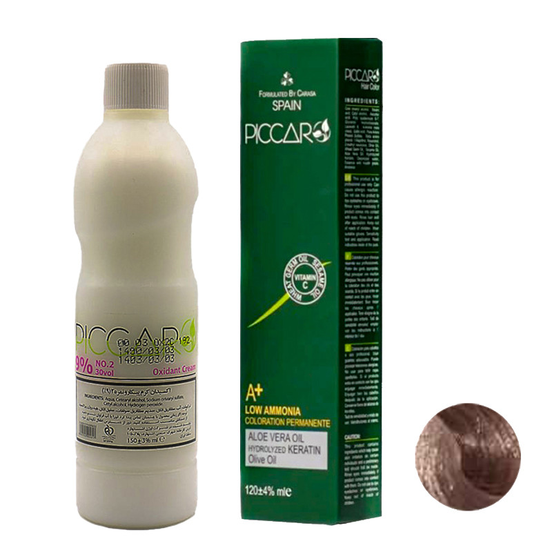 رنگ مو پیکارو شماره 7.38 حجم 120 میلی لیتر رنگ نسکافه ای به همراه اکسیدان مدل 1 نه درصدی حجم 150 میلی لیتر